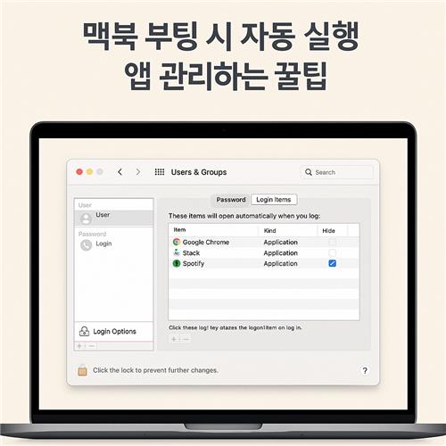 맥북을 사용할수록 부팅할 때 자동으로 실행되는 앱들이 늘어나곤 하죠. 처음에는 편리했지만, 어느 순간부터는 부팅 속도가 느려지고 원치 않는 앱들이 실행되면서 불편함을 느끼는 분들 많으실 거예요.