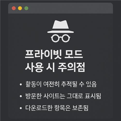 💡 TIP: 프라이빗 모드는 내 기기에 흔적을 남기지 않는 것이지, 완전한 익명성을 보장하는 것은 아닙니다!
