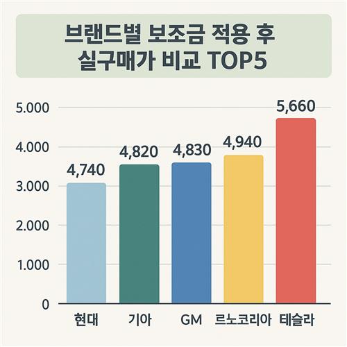 | 5위 | 아이오닉 5 (현대차) | 52,000,000원 | -11,000,000원 | 41,000,000원 |
