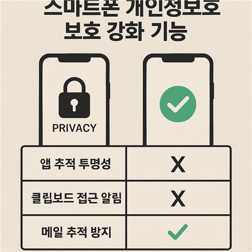 | 구글 (Android) | 개별 앱 권한 설정 및 위치 정보 접근 제한 기능 강화. 최근에는 자동 삭제 기능, 사진 잠금 폴더 등도 추가되며 보안 강화 중. |
