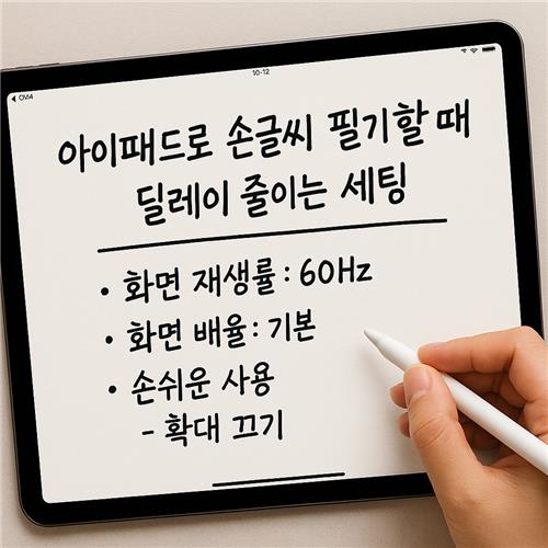 아이패드에서 필기를 하다 보면 펜이 손을 따라오지 못해 살짝 답답했던 경험, 한 번쯤 있으셨죠? 특히 손글씨를 자주 쓰는 분들에게는 딜레이 현상이 꽤 큰 스트레스가 될 수 있어요. 오늘은 그런 불편함을 줄이기 위한 아이패드 손글씨 필기 딜레이 최소화 세팅 방법을 꼼꼼하게 정리해드릴게요.