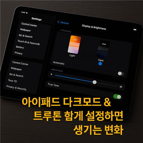 아이패드, 다크모드, 트루톤, 눈피로, 색온도, OLED 절전, 애플 기능, 아이패드 설정, 화면 최적화, 디스플레이 조절