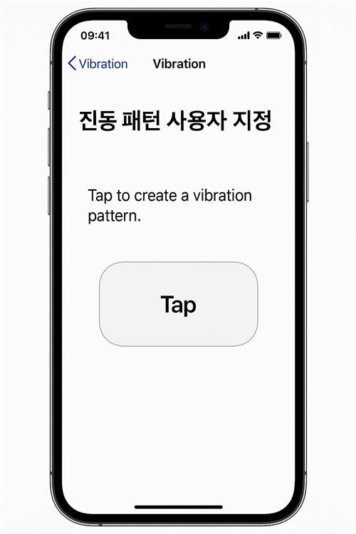 이제 직접 패턴을 만들어 보겠습니다. ‘진동’ 화면에서 가장 아래쪽의 ‘새 진동 생성’을 탭하면 녹음 화면이 열립니다. 화면을 누르고 떼는 동작으로 길고 짧은 진동을 기록하며, 상단의 재생 버튼으로 즉시 미리 들을 수 있습니다. 마음에 들지 않으면 다시 녹음하고, 완성되면 저장을 눌러 이름을 붙여 주세요. 노크 리듬처럼 규칙적인 패턴, 모스부호처럼 길고 짧음을 조합한 패턴 등 일상에서 익숙한 리듬을 응용하면 인지 속도가 높아집니다. 아래 순서를 참고해 한 번에 완성도를 끌어올려 보세요.