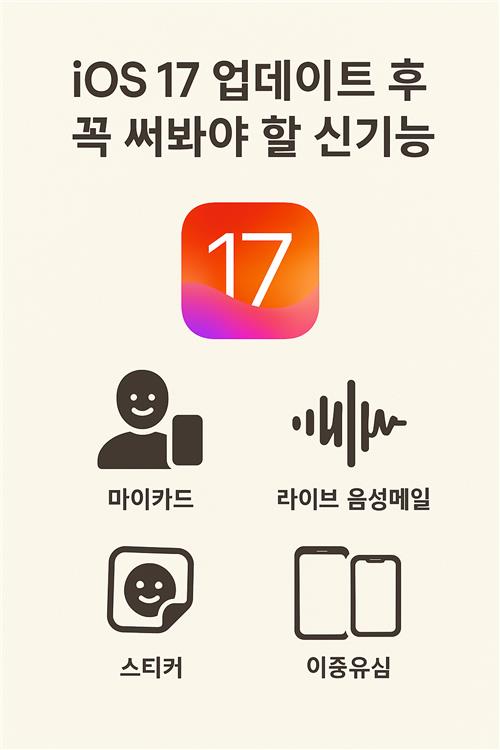 iOS 17, 아이폰 업데이트, 애플 신기능, 라이브 스티커, 연락처 포스터, 음성메시지 전사, 스탠바이 모드, 아이폰 꿀팁, 애플 기능 소개, 아이폰 설정