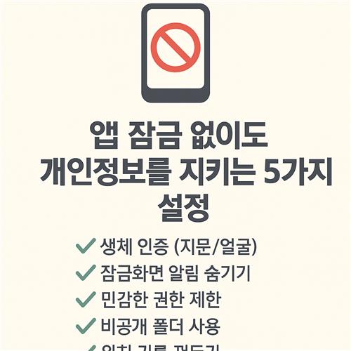 앱 잠금을 하지 않아도 내 개인정보를 보호할 수 있는 실속 있는 설정 팁들을 정리해봤어요. 누구나 쉽게 따라 할 수 있는 항목들이니 지금 바로 확인해보세요!