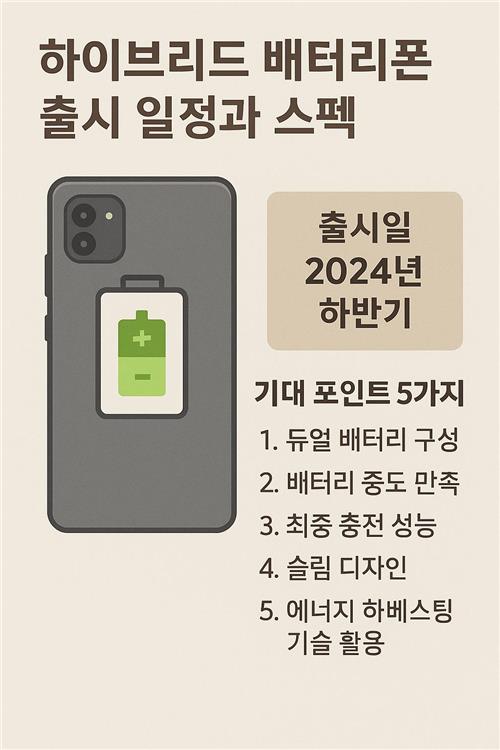 하이브리드 배터리 기술은 단순히 새로운 트렌드가 아니라, 차세대 스마트폰의 기준이 될 수 있는 매우 중요한 전환점입니다. 특히 출퇴근길, 여행, 출장 등 다양한 상황에서 안정적인 배터리 성능을 원하는 분들에게 큰 기대를 모으고 있습니다.